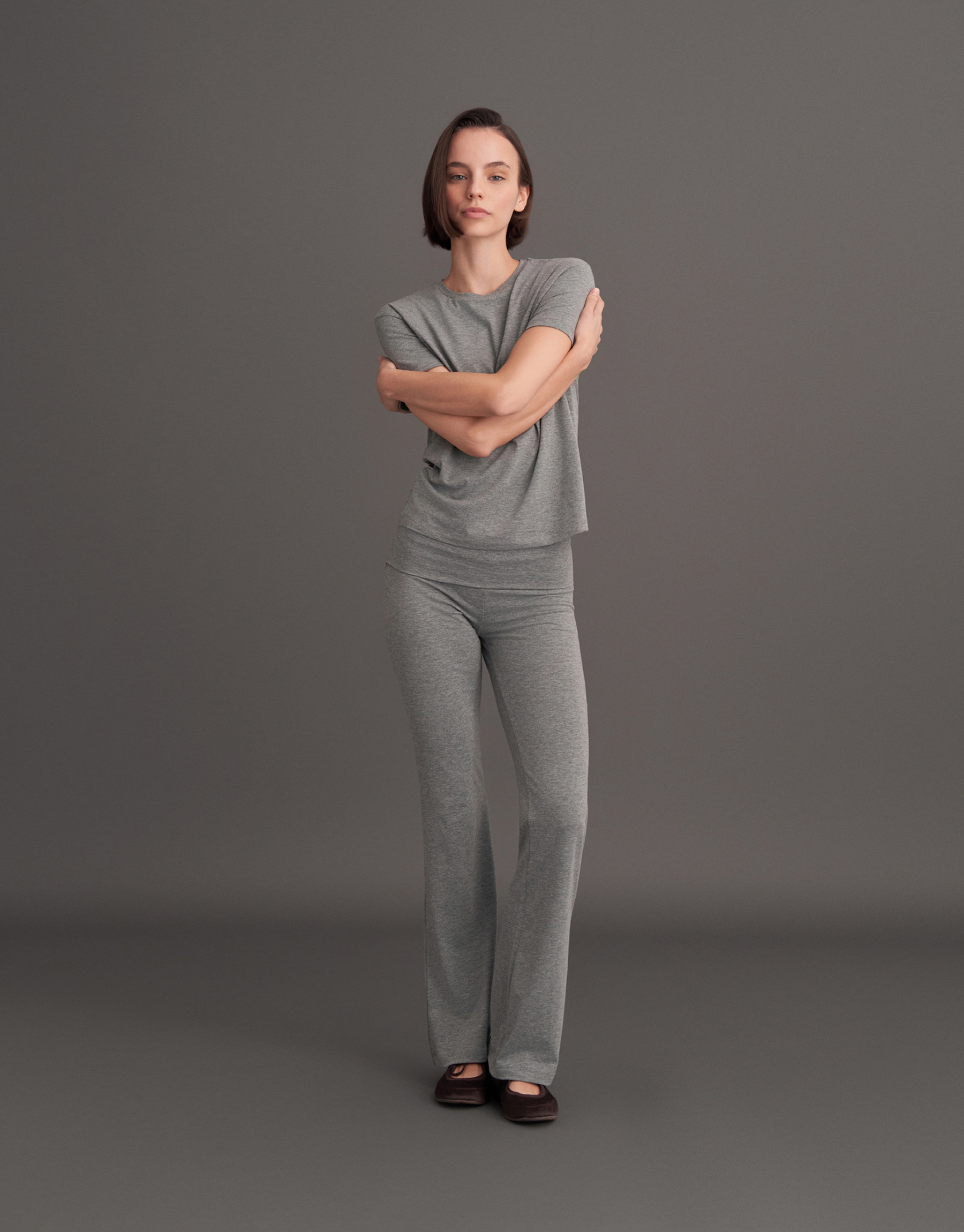 With its high waist and flared leg design, it offers a modern look. The soft fabric provides freedom of movement and ensures all-day comfort. An ideal piece for those seeking both comfort and style.