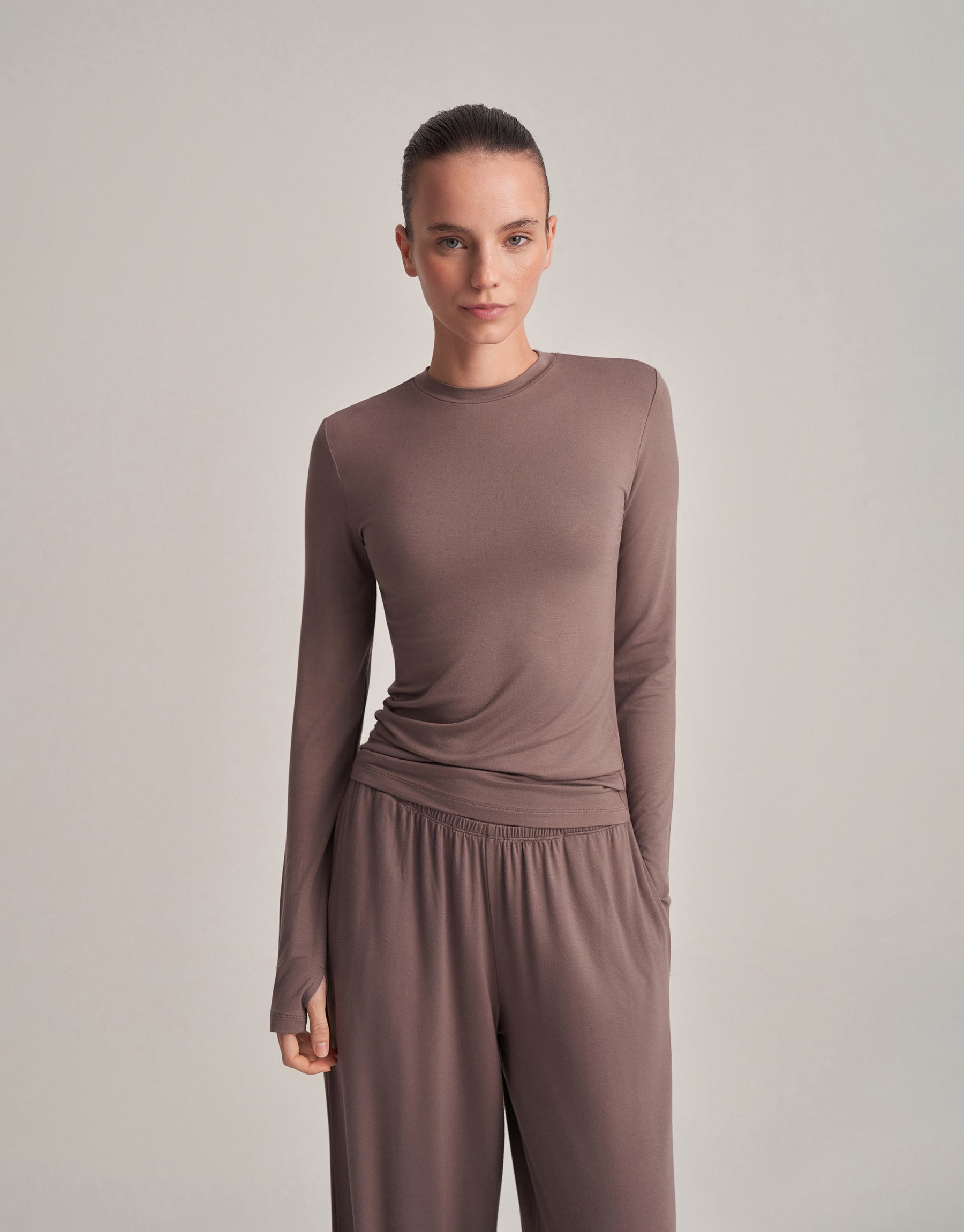 FITTED LONG-SLEEVE T-SHIRT MINK