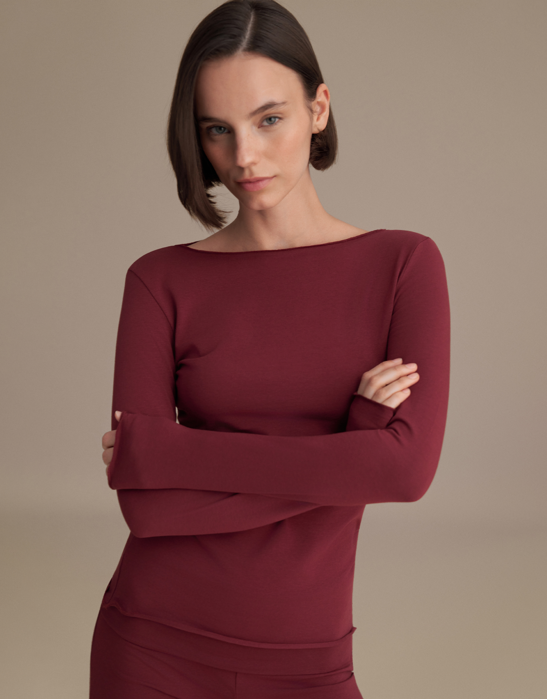 With its long sleeves and boat neckline, it has a modern look. Thanks to its relaxed fit, it is comfortable, and its simple design makes it a timeless piece.