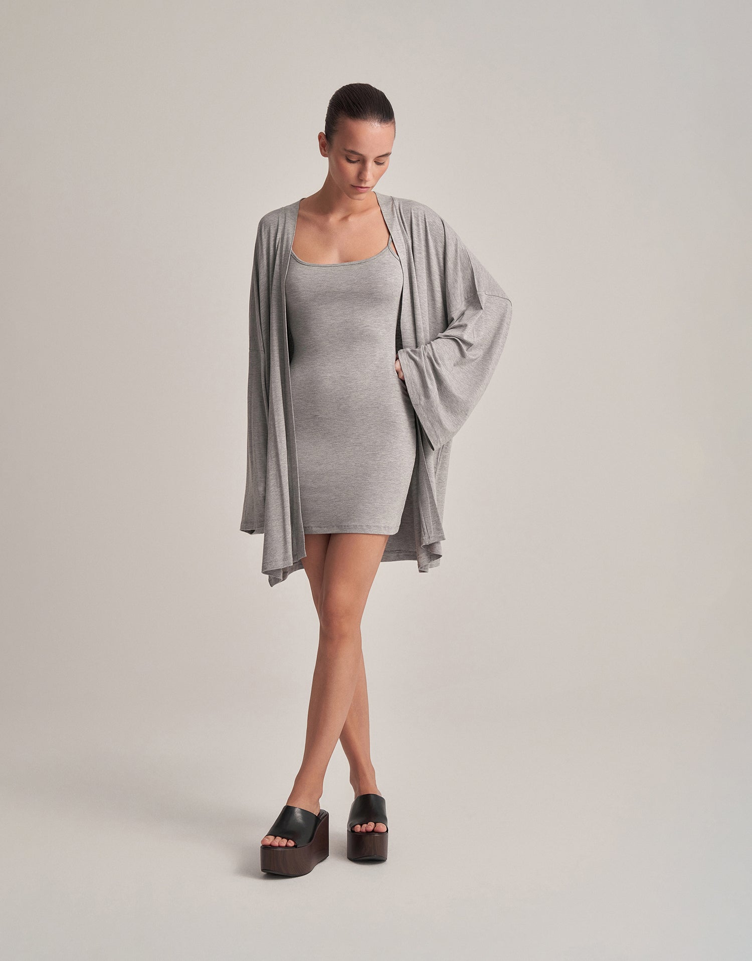 BELTED COMBINED SHORT KIMONO GRAY MELANGE