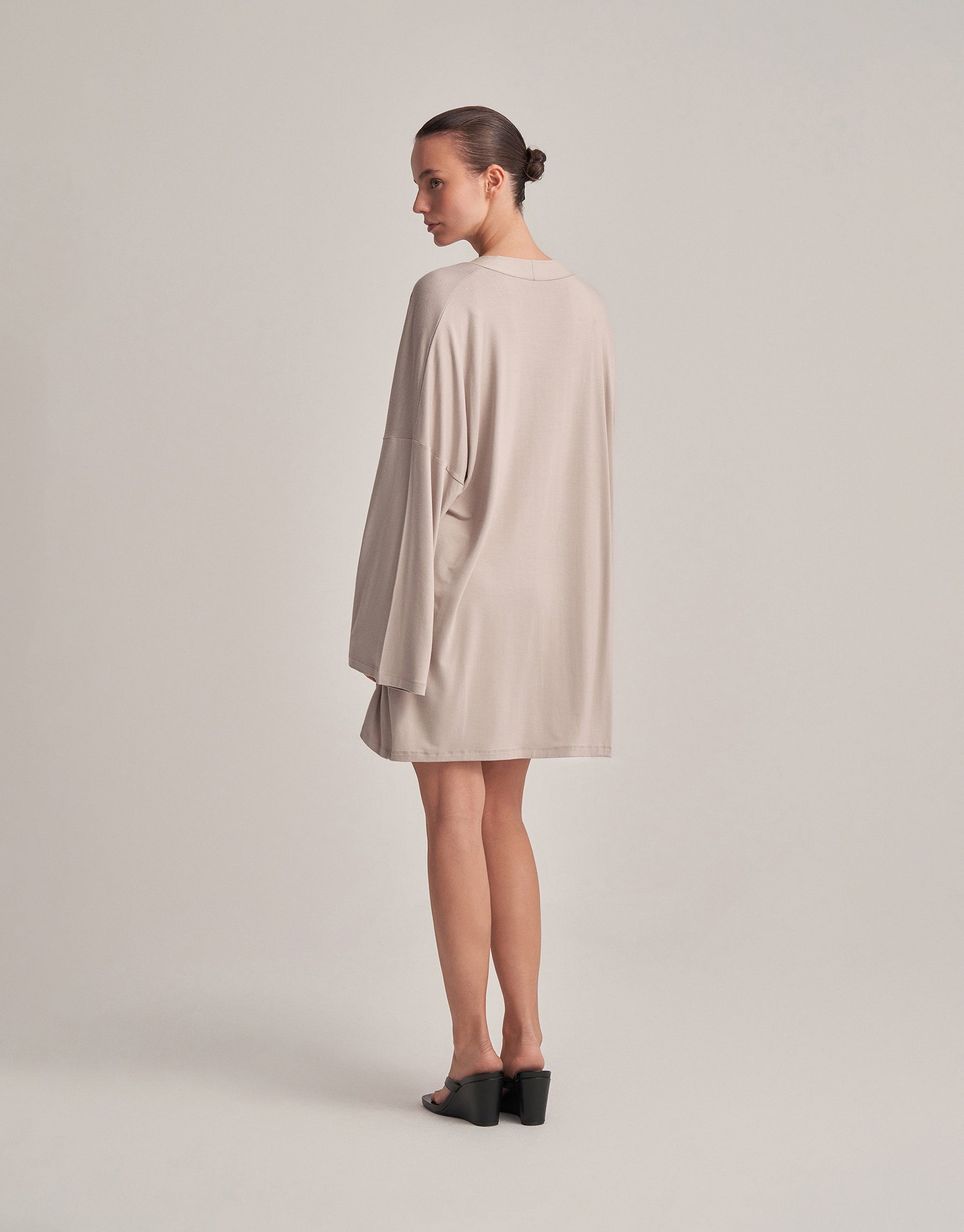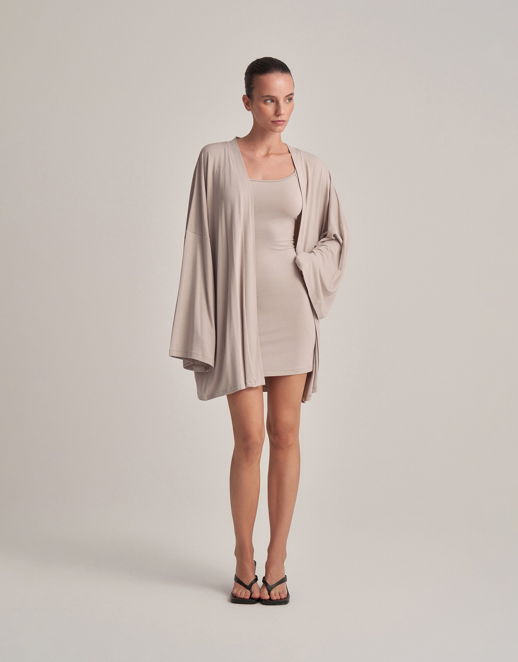 BELTED COMBINED SHORT KIMONO STONE