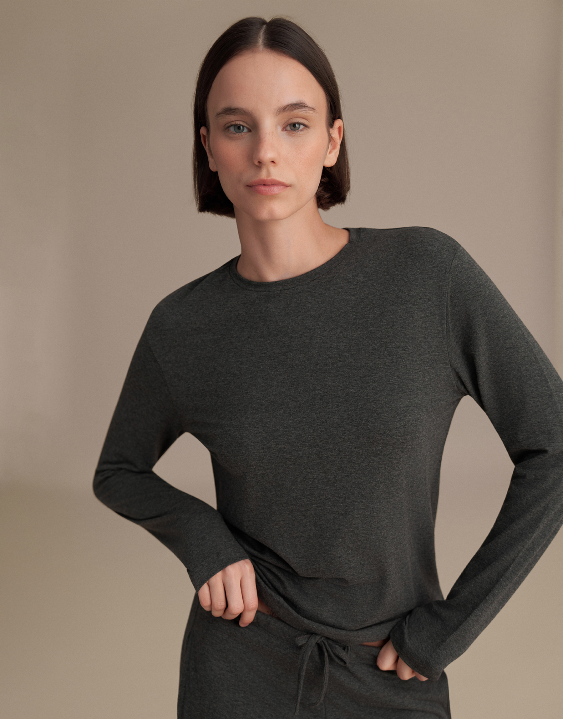 With its long sleeves and crew neck design, it offers a simple look. Suitable for everyday wear; its relaxed fit ensures comfort at any time of day. It's one of the most versatile basic pieces in your wardrobe.