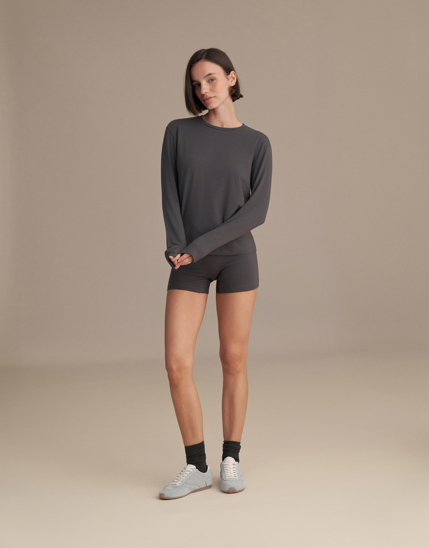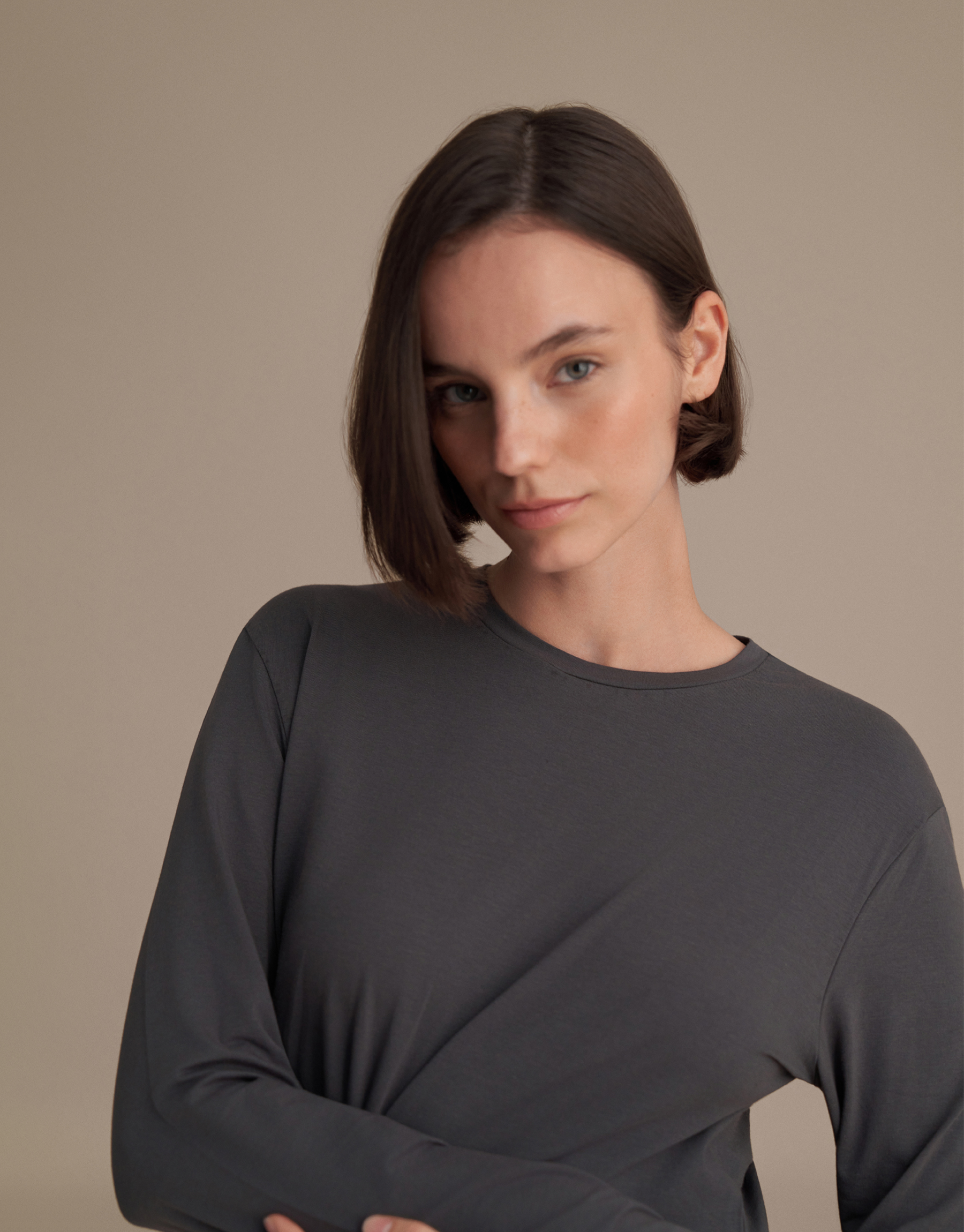 LONG-SLEEVED BASIC T-SHIRT, SMOKE GRAY