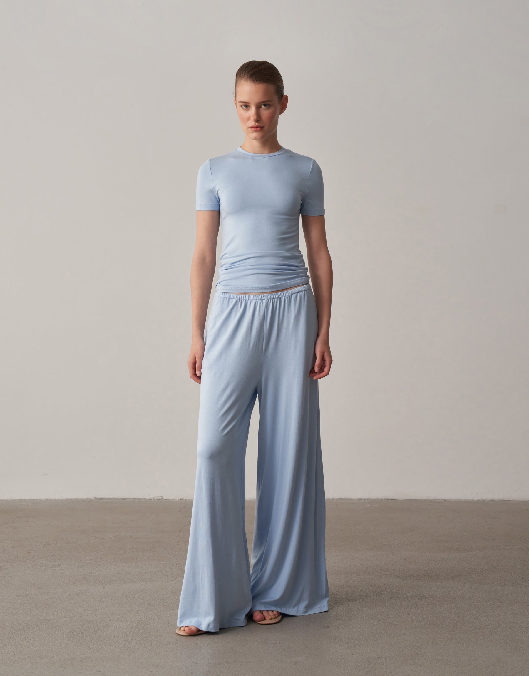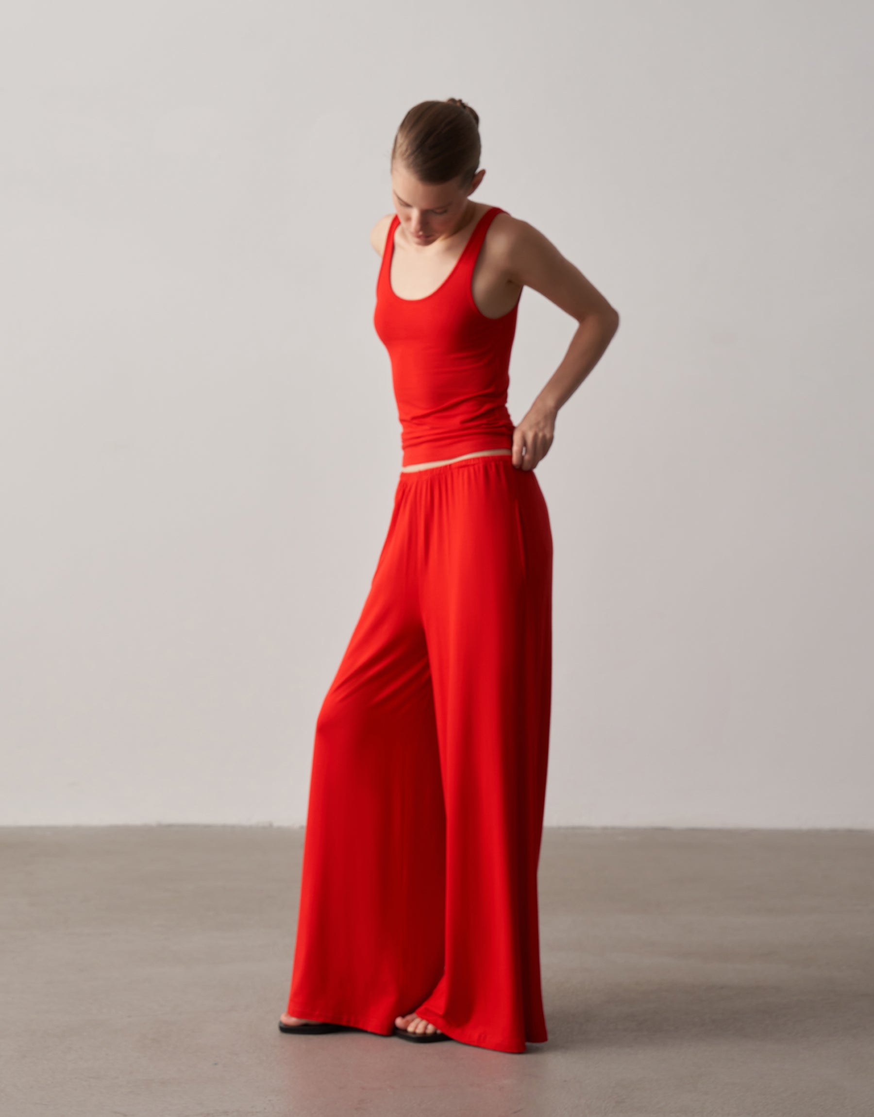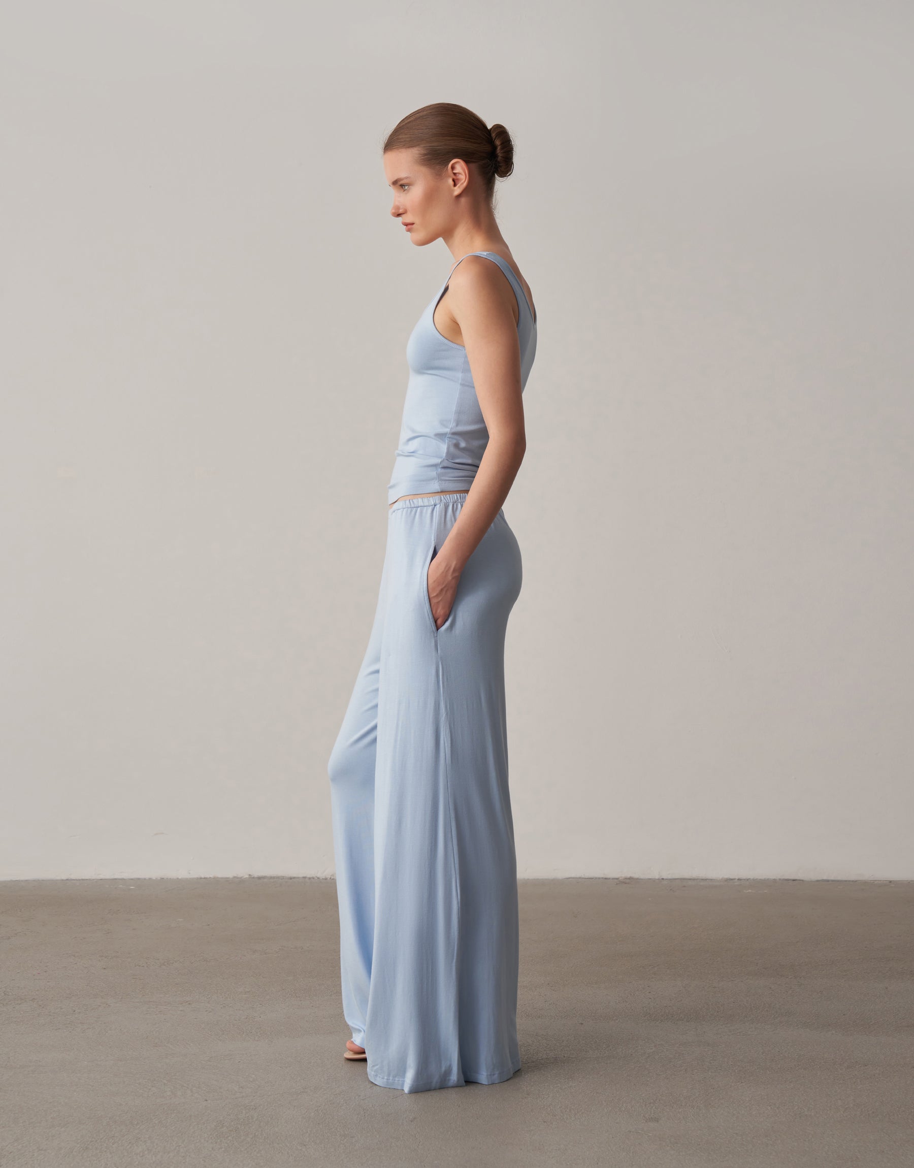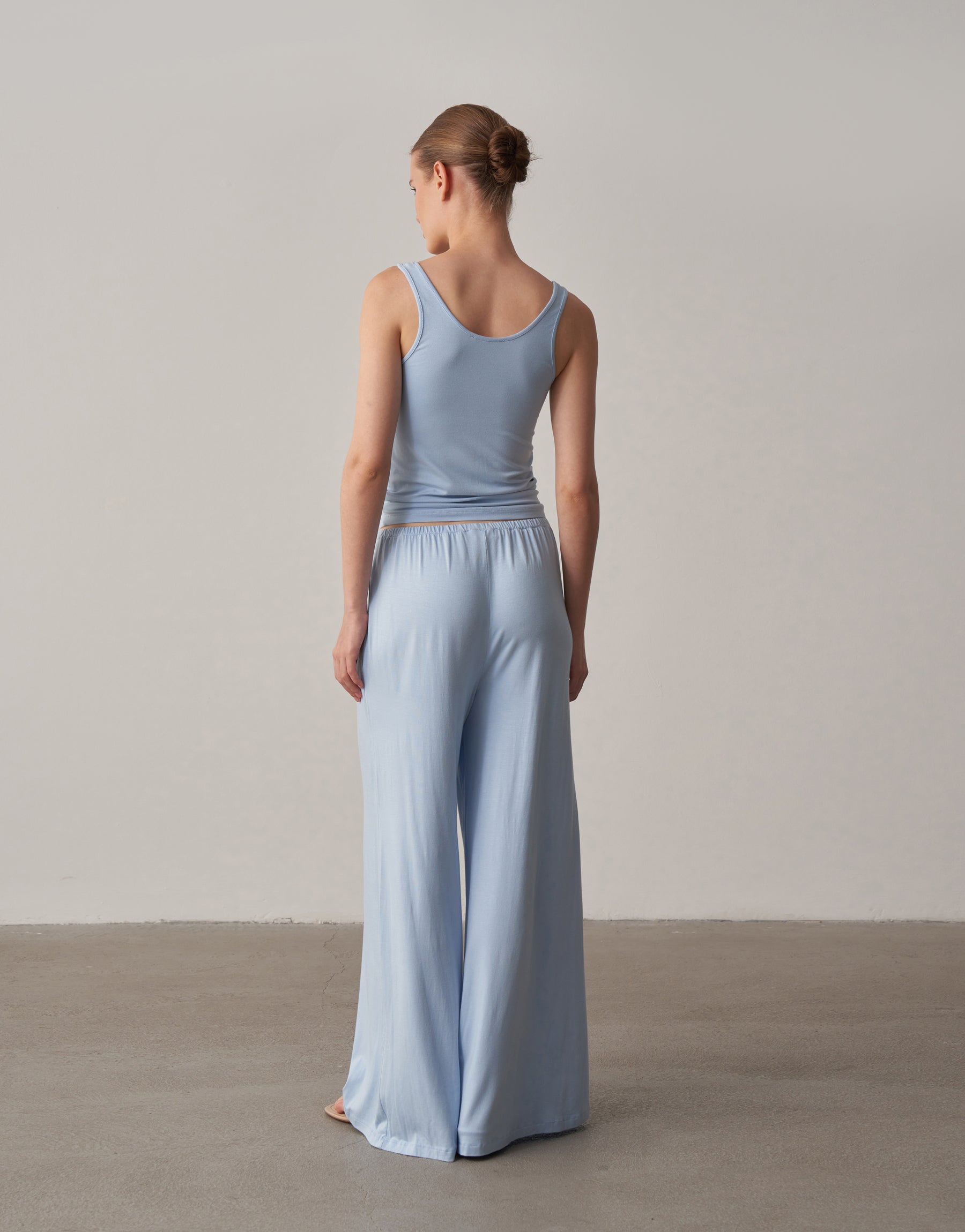 Günün ritmine uyum sağlayan, geniş ve rahat pantolon. Yumuşak dokulu, nefes alan kumaşı cilde naziktir. Akışkan formu adımları hafifletir. Elastik bel bandı nazikçe kavrar, iz yapmaz. Geniş paça kesimi temiz ve modern bir silüet sunar. Evde konforlu, dışarıda şık kullanım sağlar.