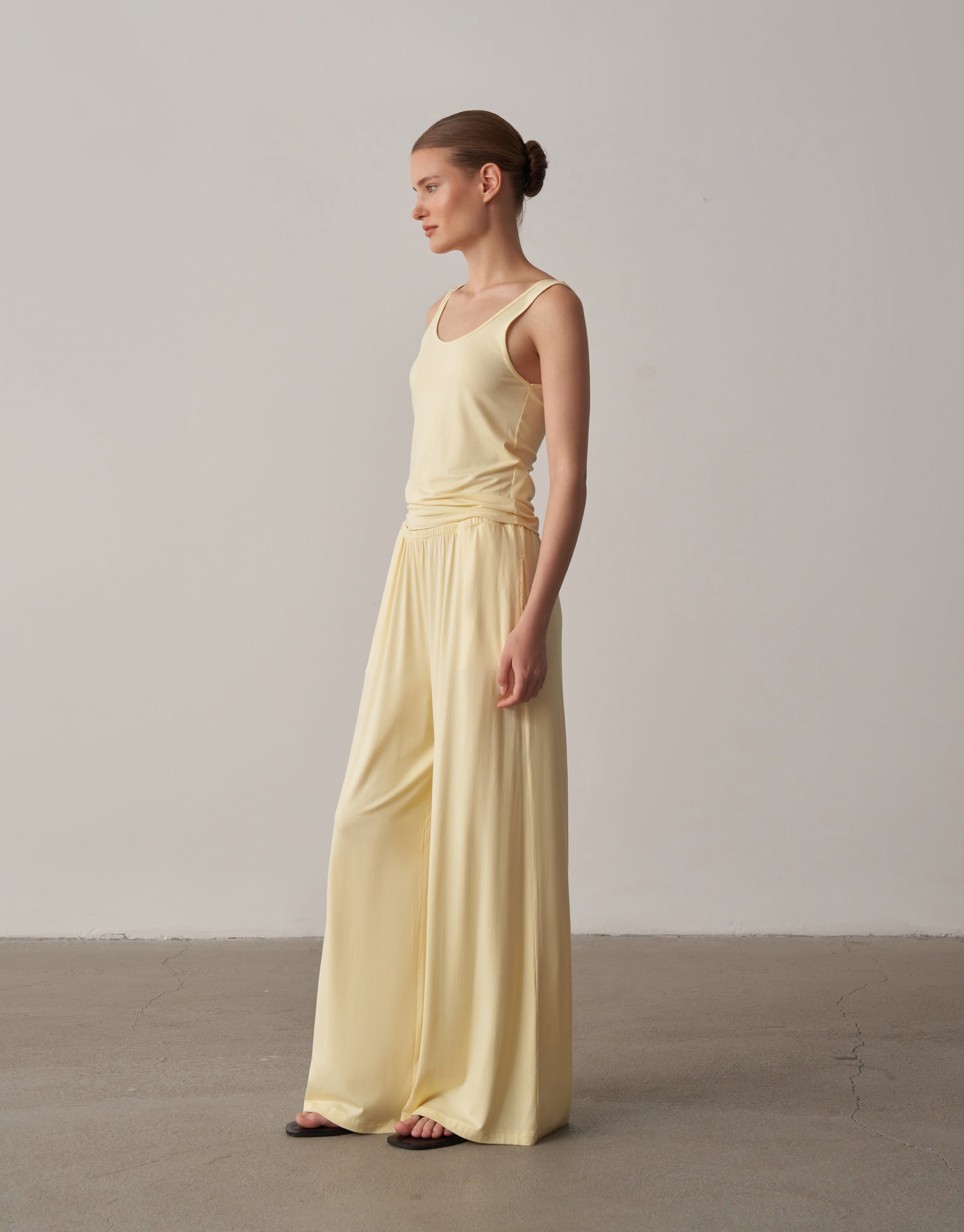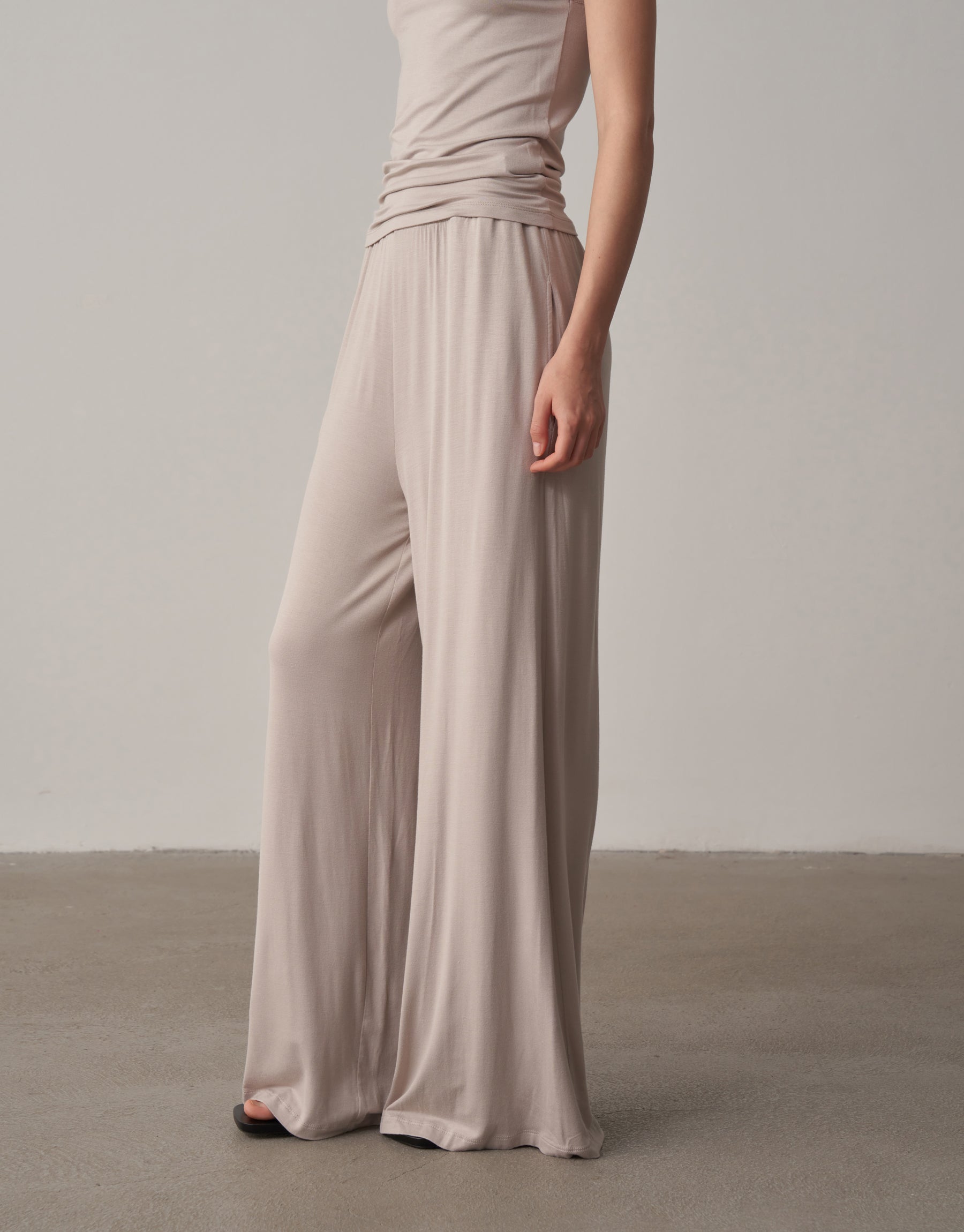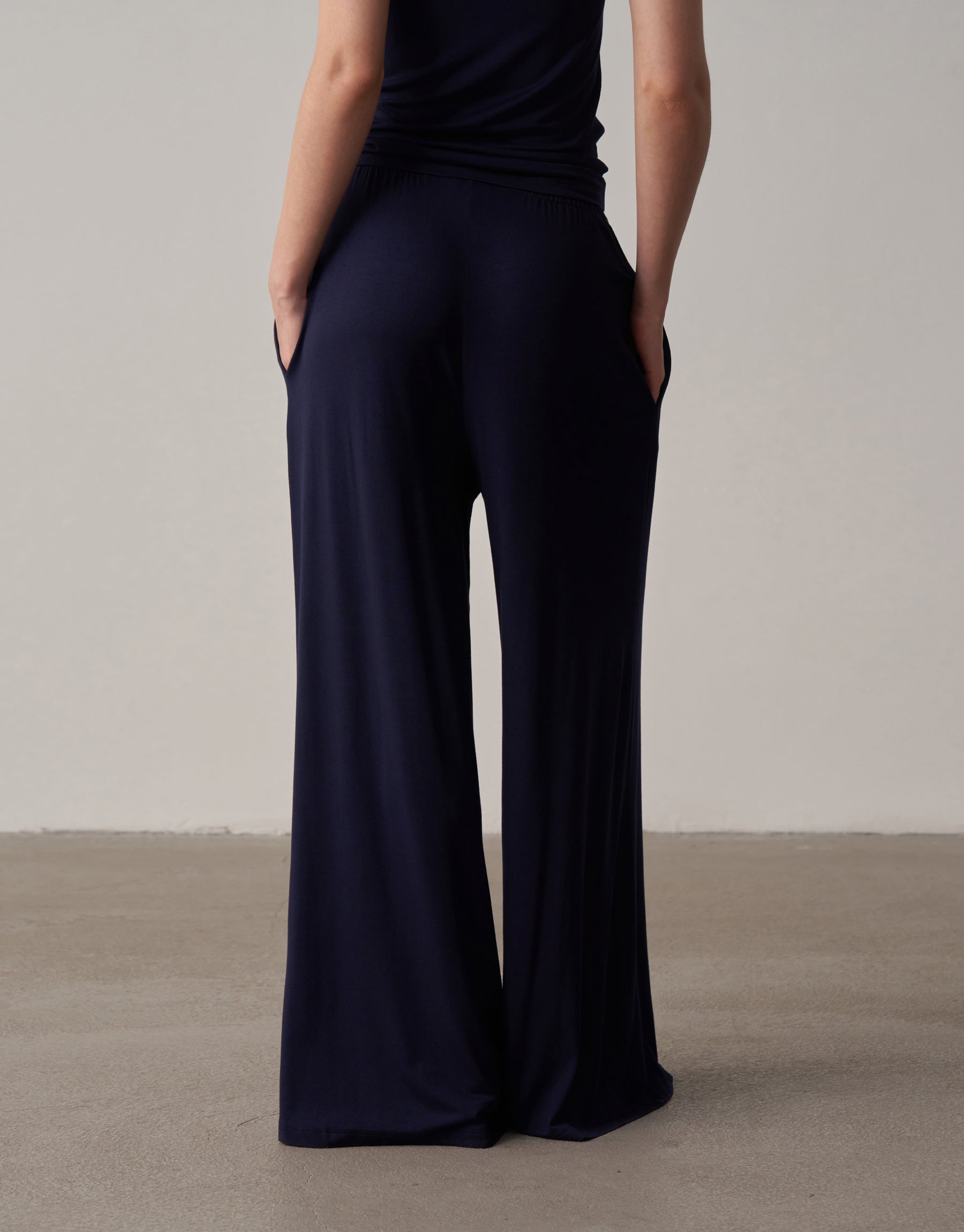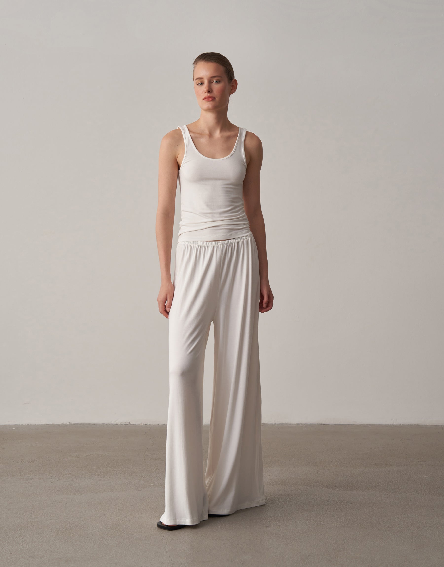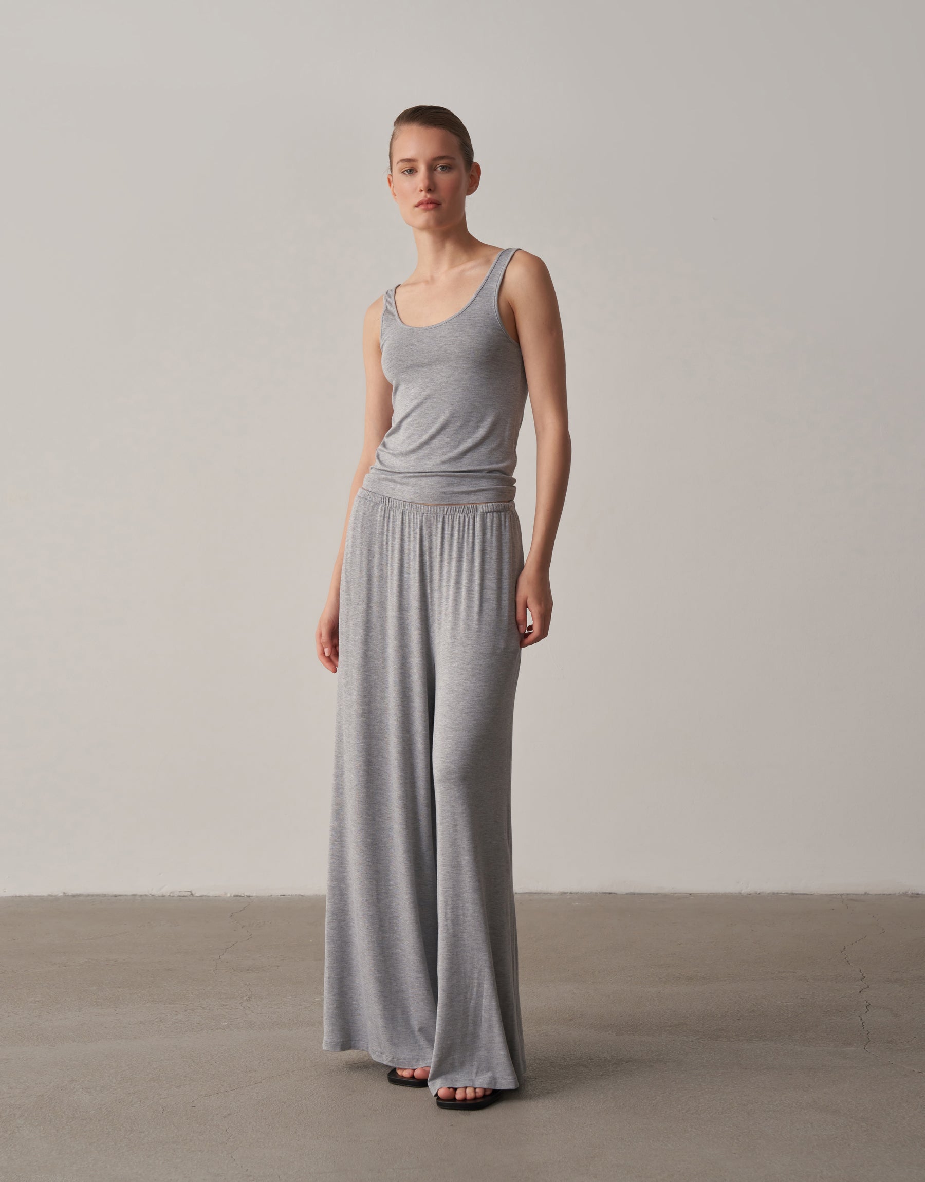 Günün ritmine uyum sağlayan, geniş ve rahat pantolon. Yumuşak dokulu, nefes alan kumaşı cilde naziktir. Akışkan formu adımları hafifletir. Elastik bel bandı nazikçe kavrar, iz yapmaz. Geniş paça kesimi temiz ve modern bir silüet sunar. Evde konforlu, dışarıda şık kullanım sağlar.