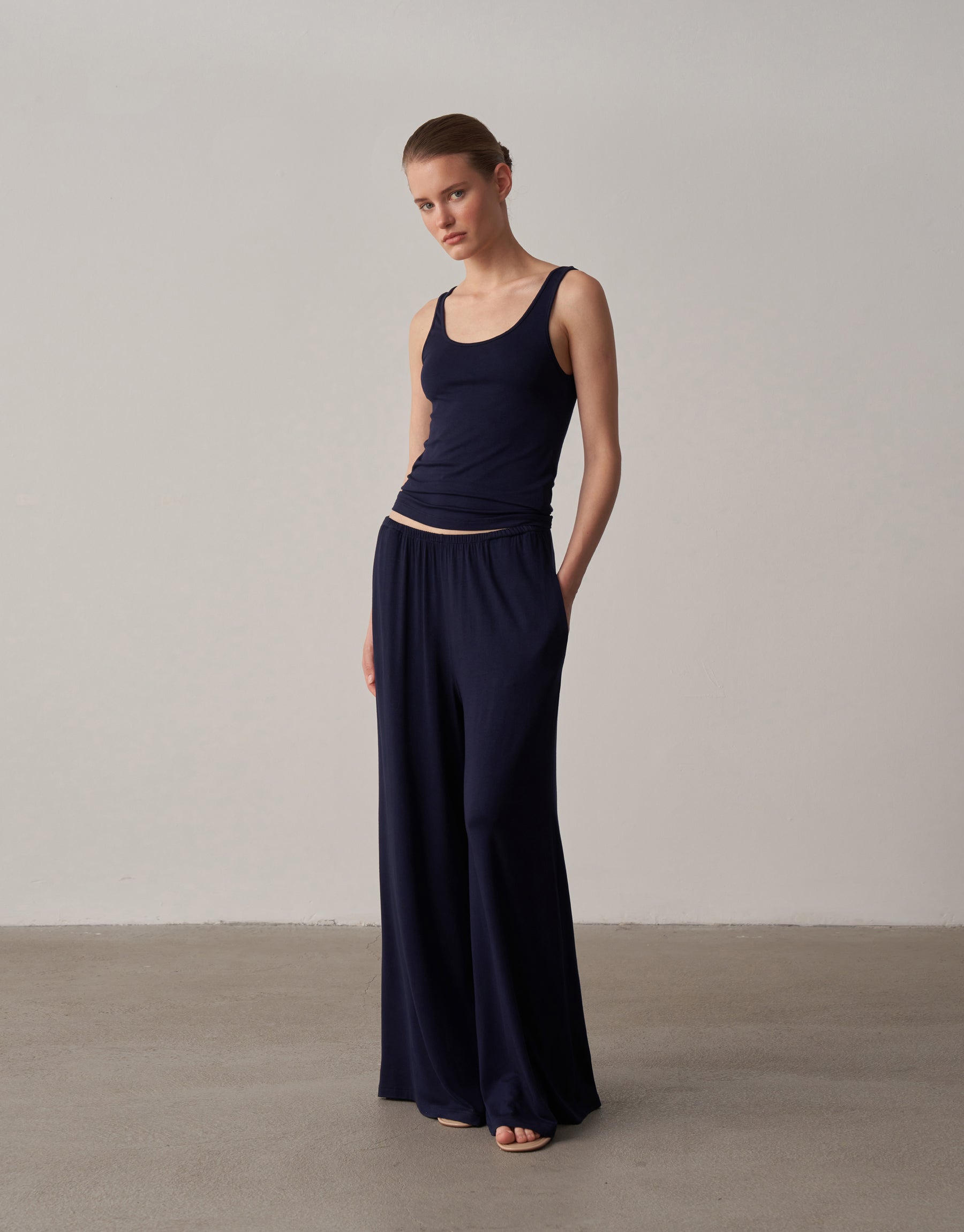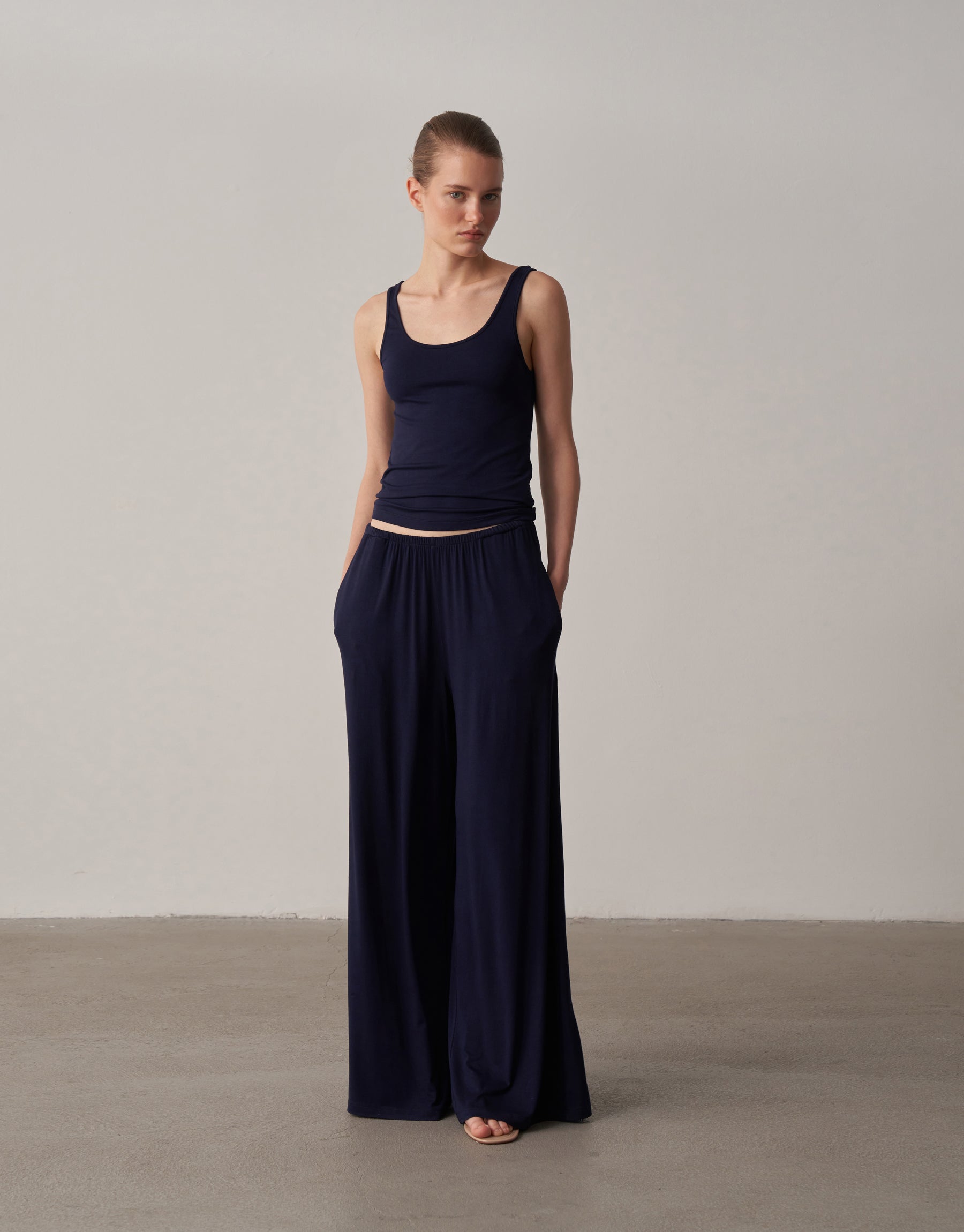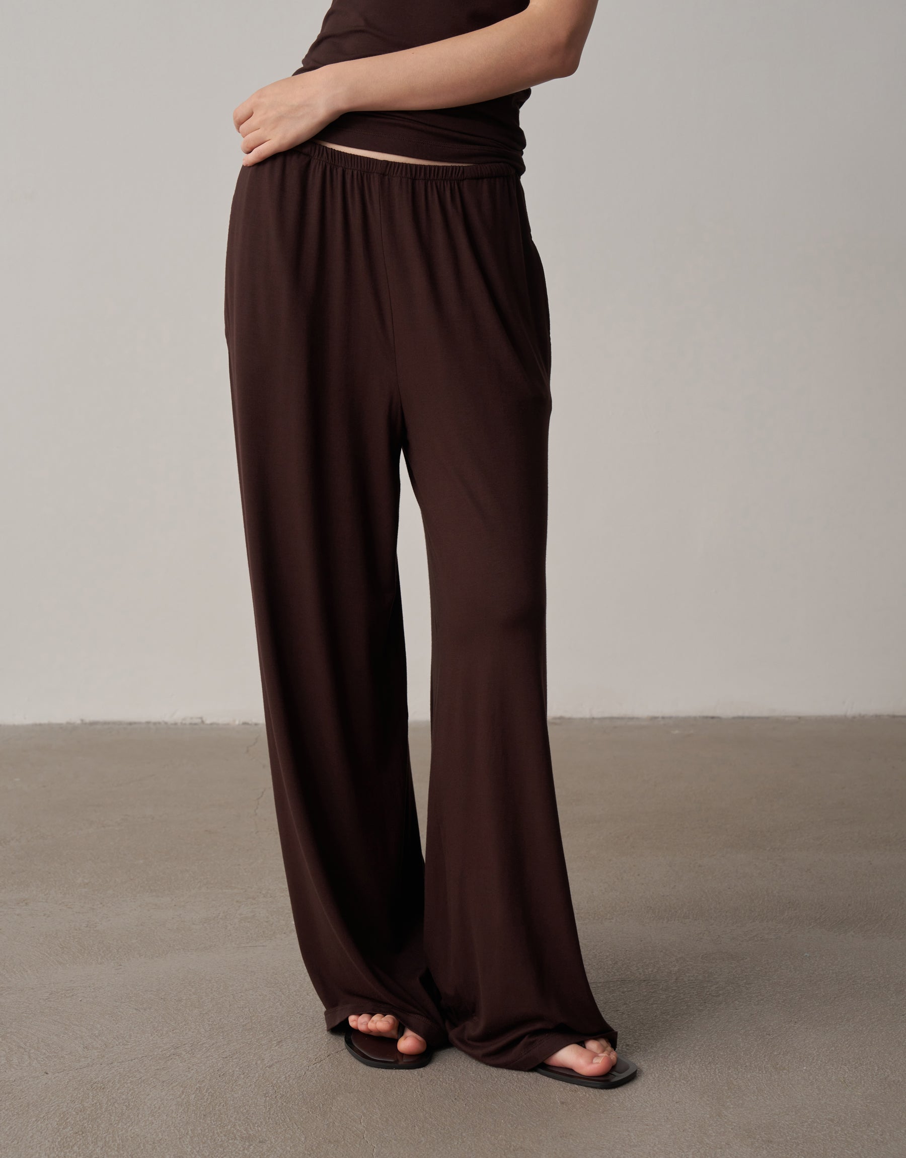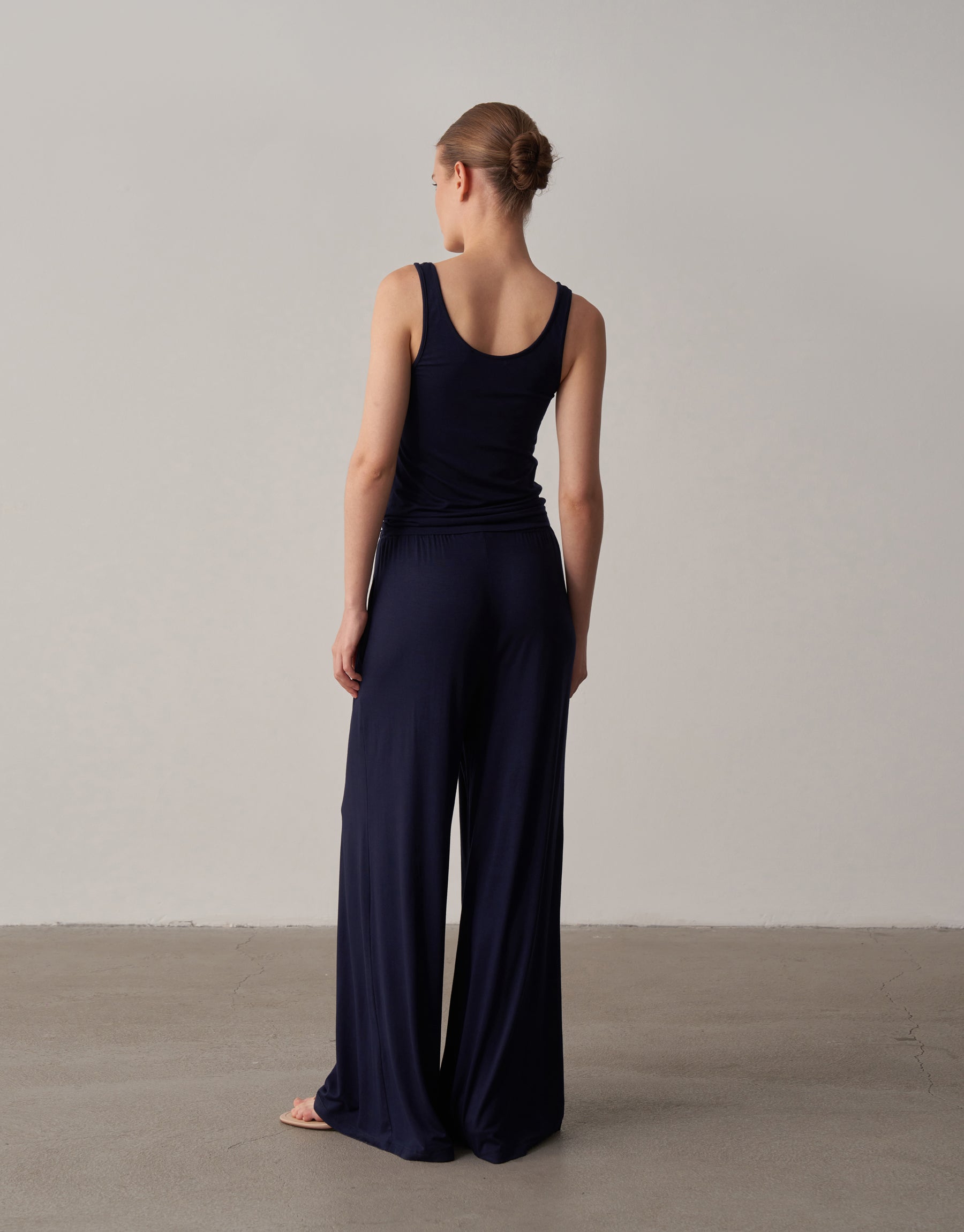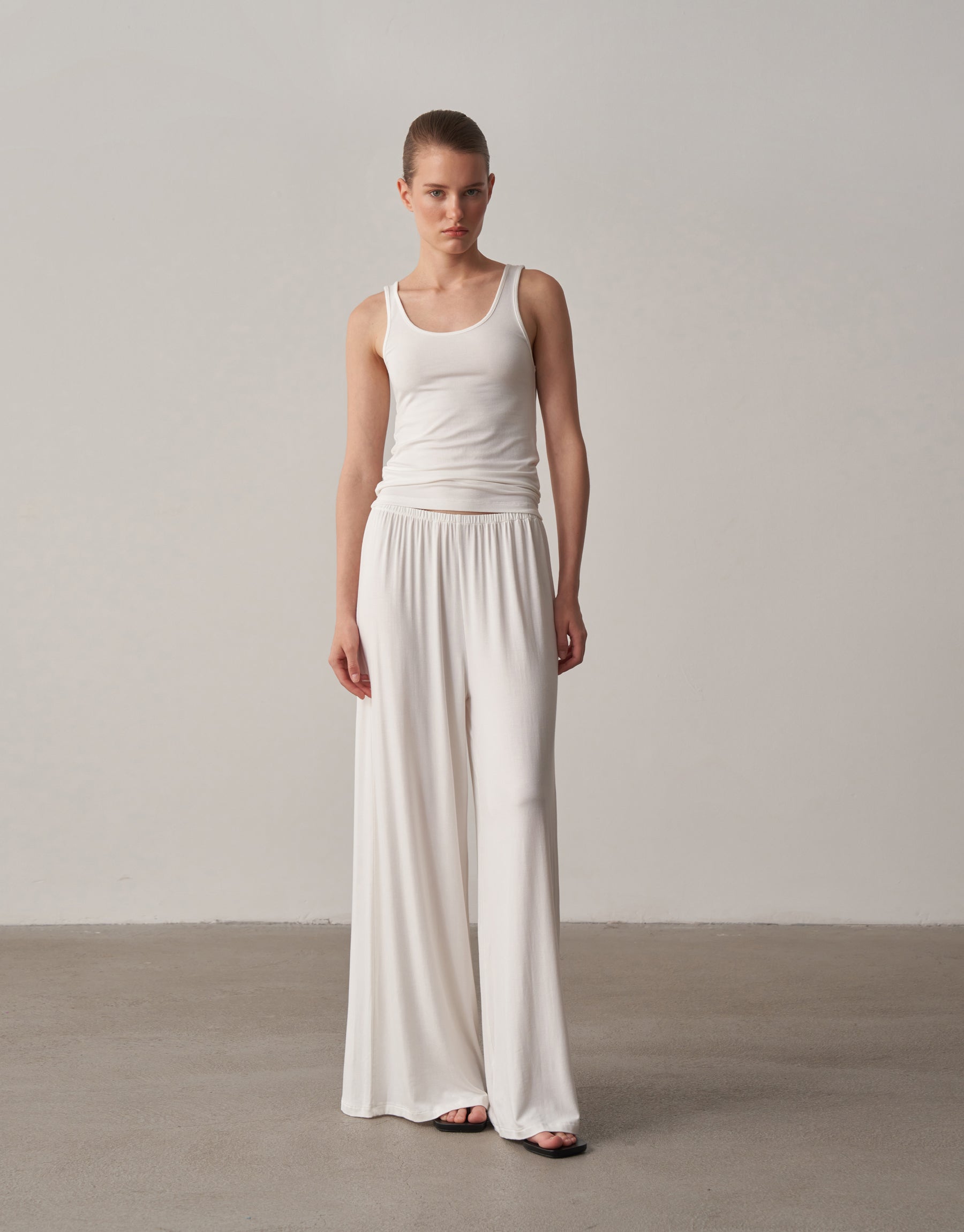 Günün ritmine uyum sağlayan, geniş ve rahat pantolon. Yumuşak dokulu, nefes alan kumaşı cilde naziktir. Akışkan formu adımları hafifletir. Elastik bel bandı nazikçe kavrar, iz yapmaz. Geniş paça kesimi temiz ve modern bir silüet sunar. Evde konforlu, dışarıda şık kullanım sağlar.