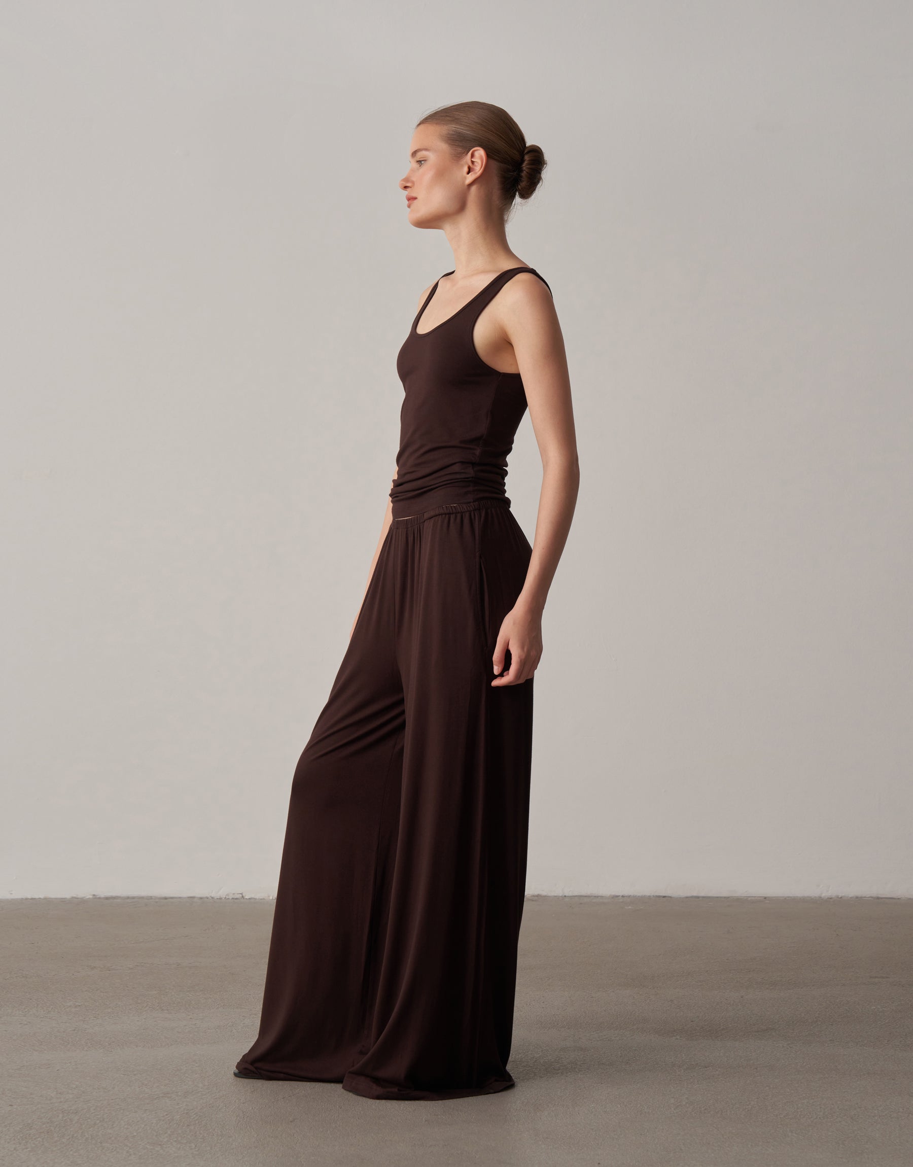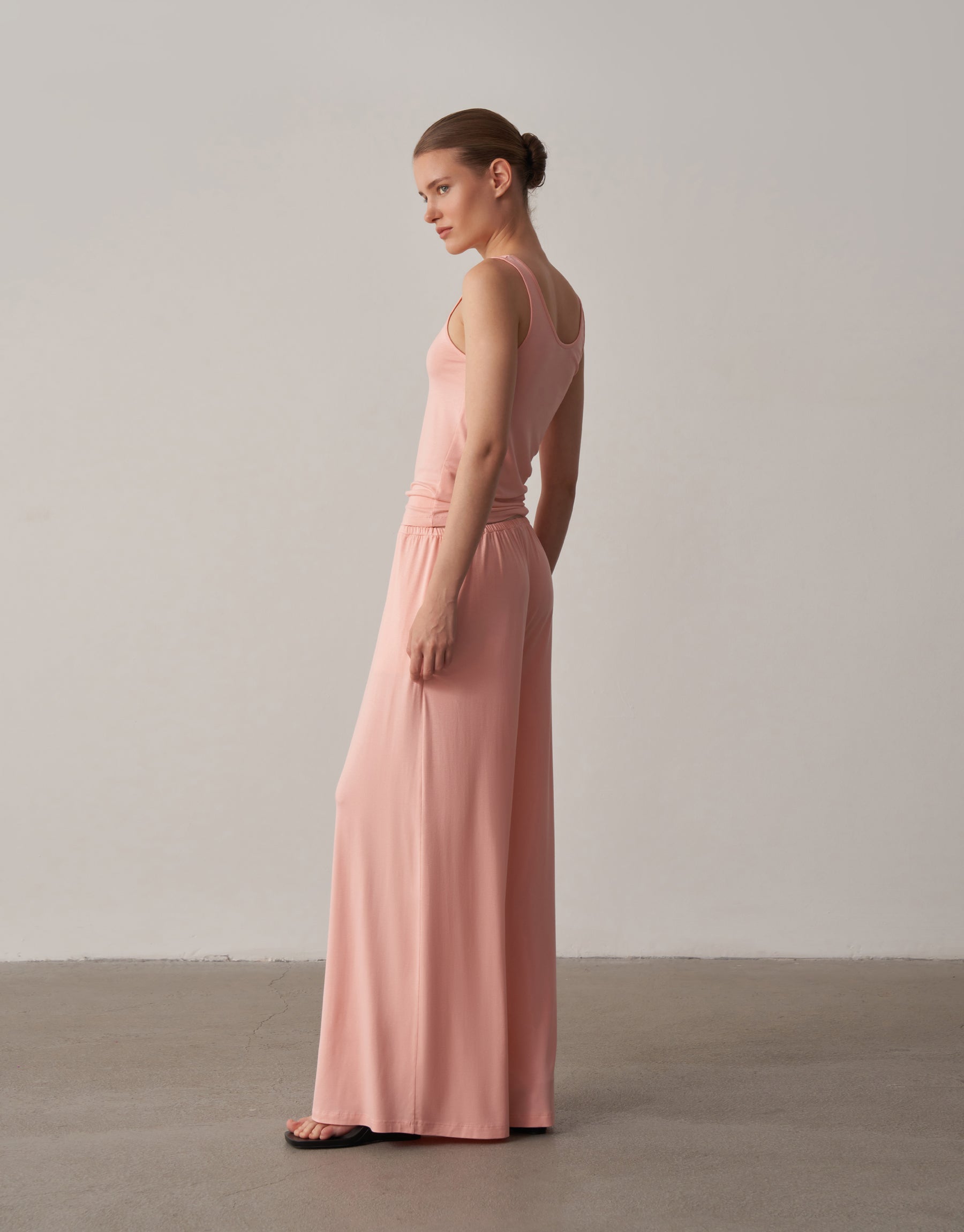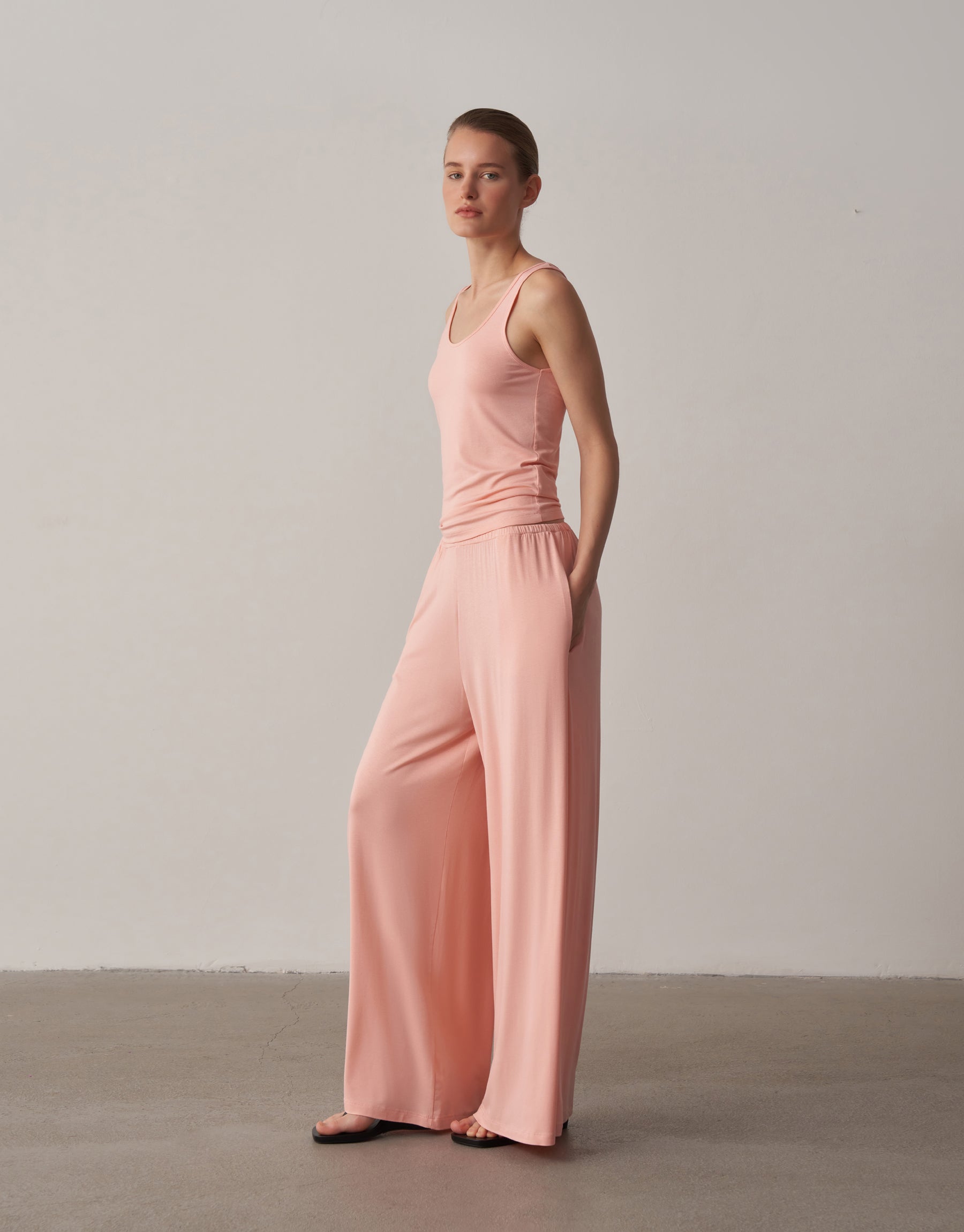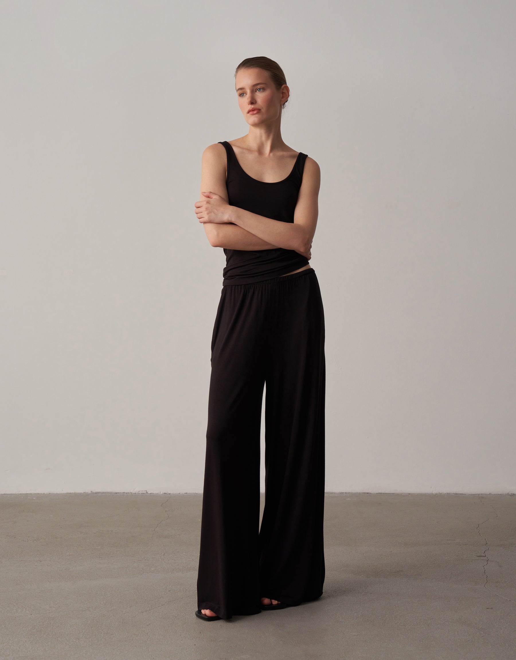 Günün ritmine uyum sağlayan, geniş ve rahat pantolon. Yumuşak dokulu, nefes alan kumaşı cilde naziktir. Akışkan formu adımları hafifletir. Elastik bel bandı nazikçe kavrar, iz yapmaz. Geniş paça kesimi temiz ve modern bir silüet sunar. Evde konforlu, dışarıda şık kullanım sağlar.