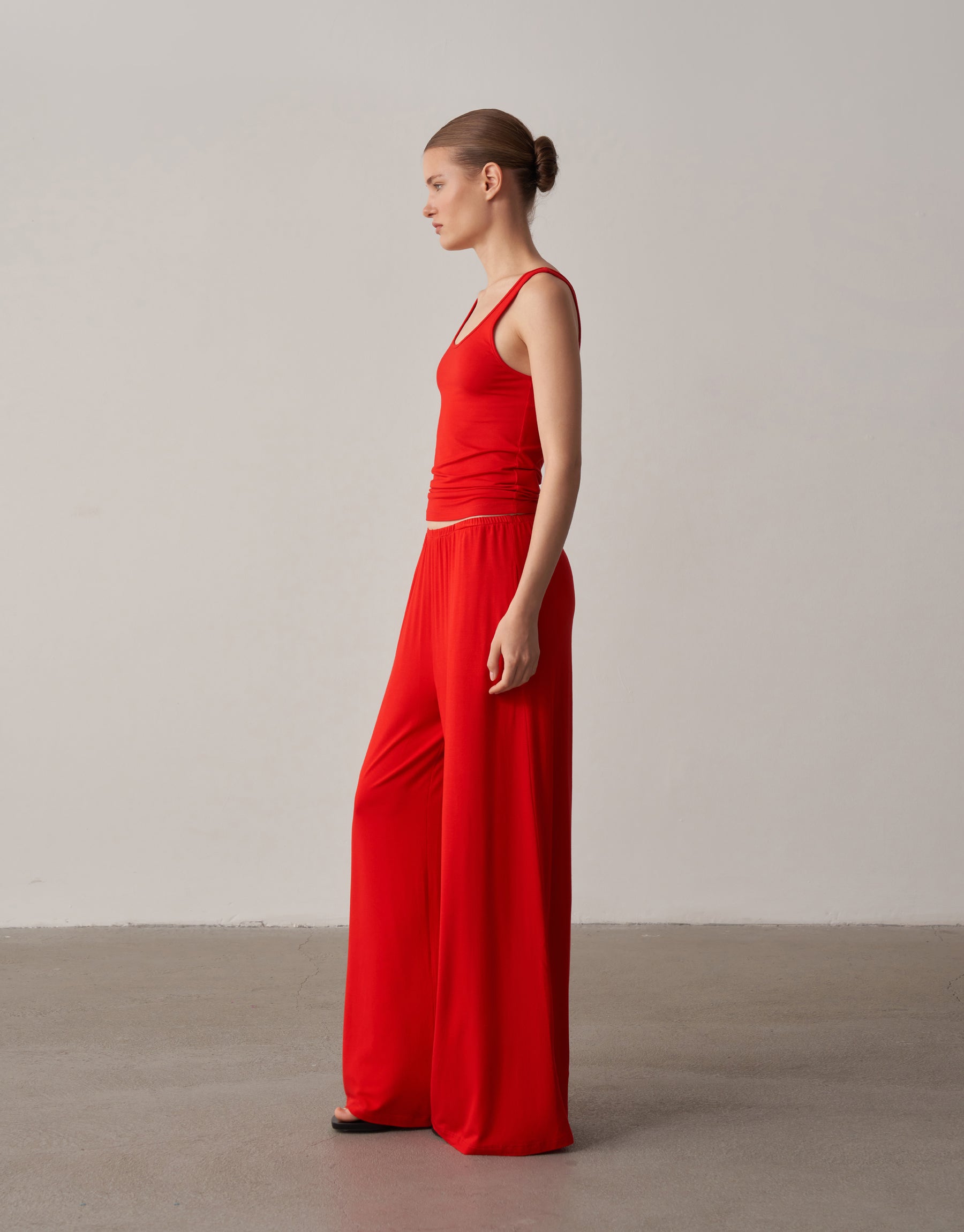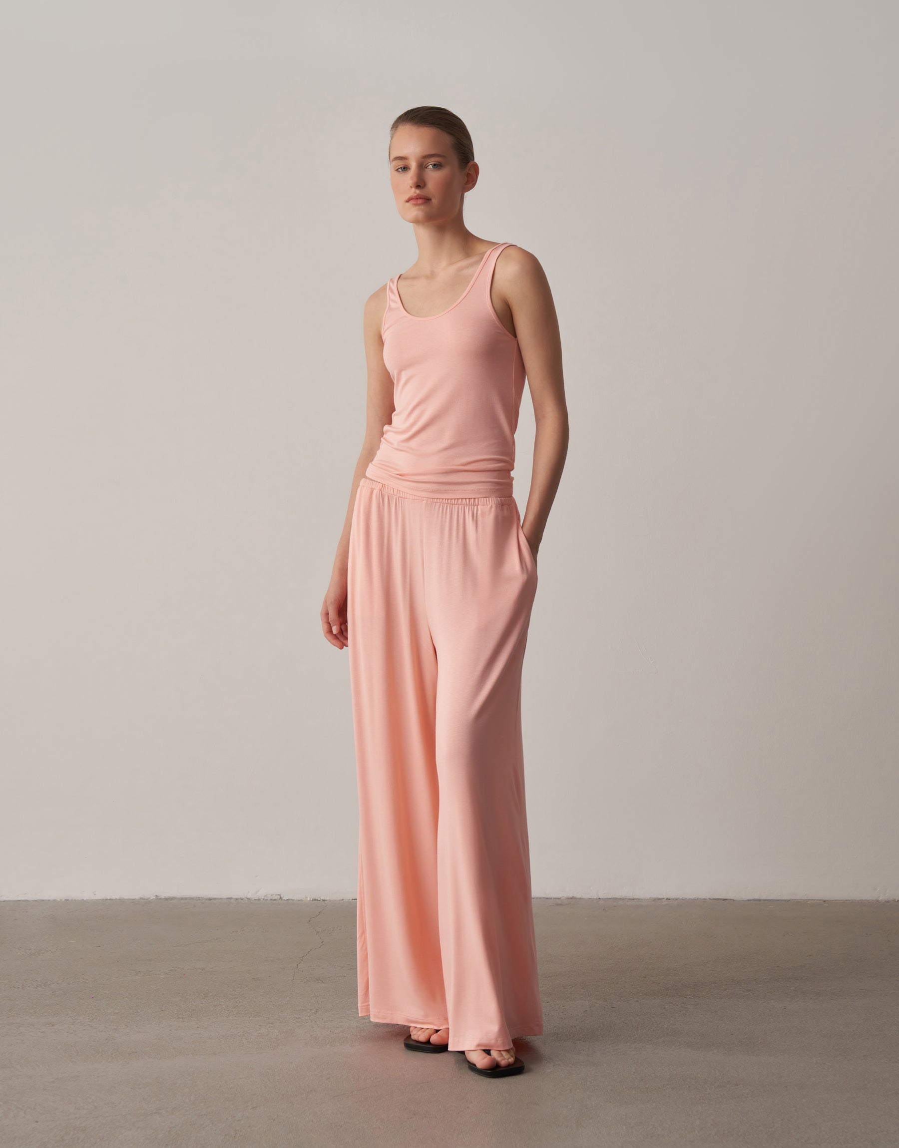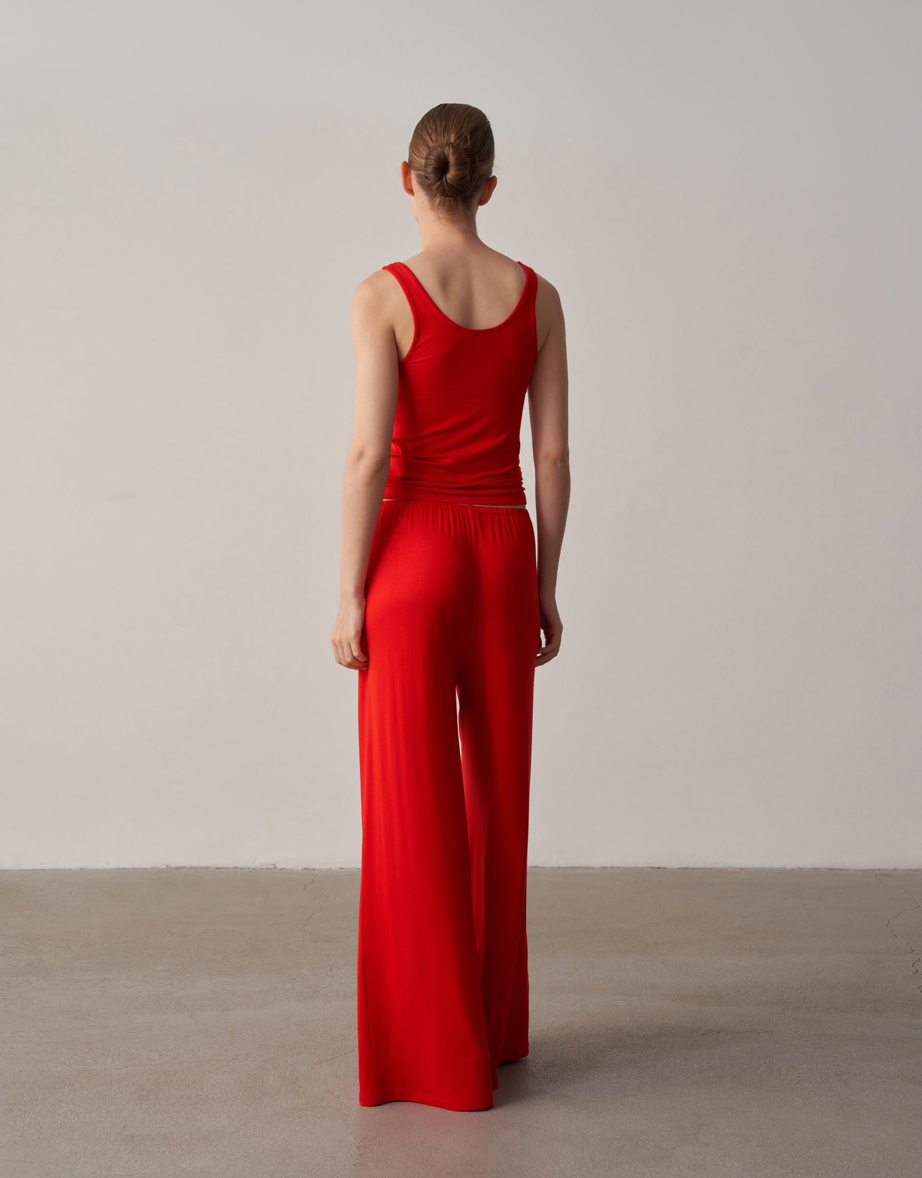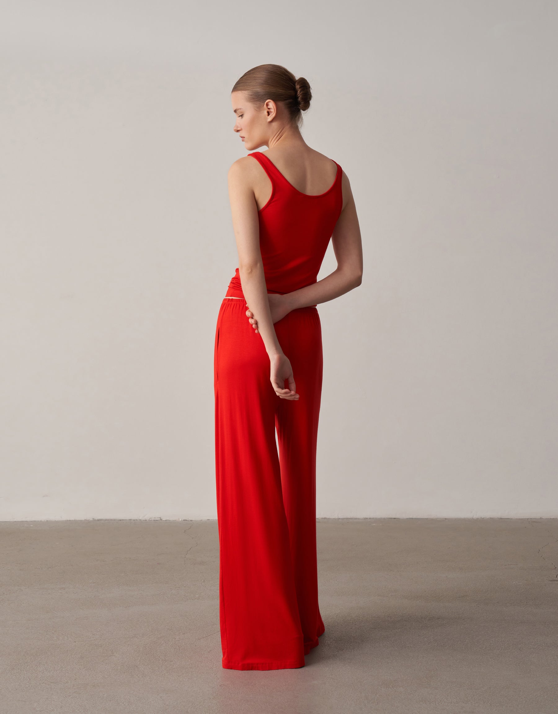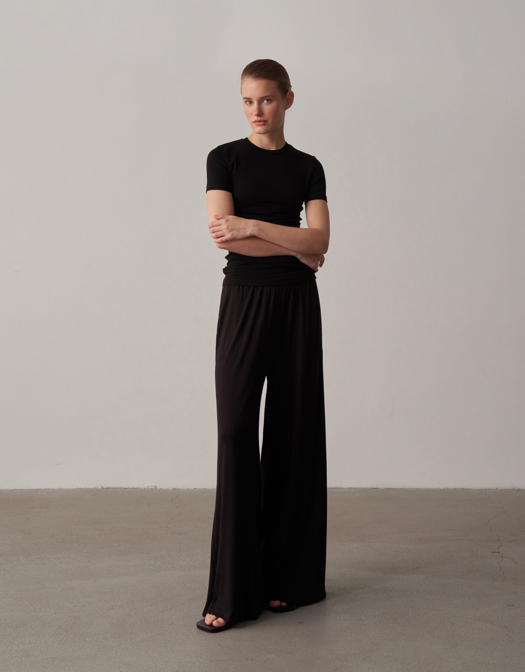 Günün ritmine uyum sağlayan, geniş ve rahat pantolon. Yumuşak dokulu, nefes alan kumaşı cilde naziktir. Akışkan formu adımları hafifletir. Elastik bel bandı nazikçe kavrar, iz yapmaz. Geniş paça kesimi temiz ve modern bir silüet sunar. Evde konforlu, dışarıda şık kullanım sağlar.