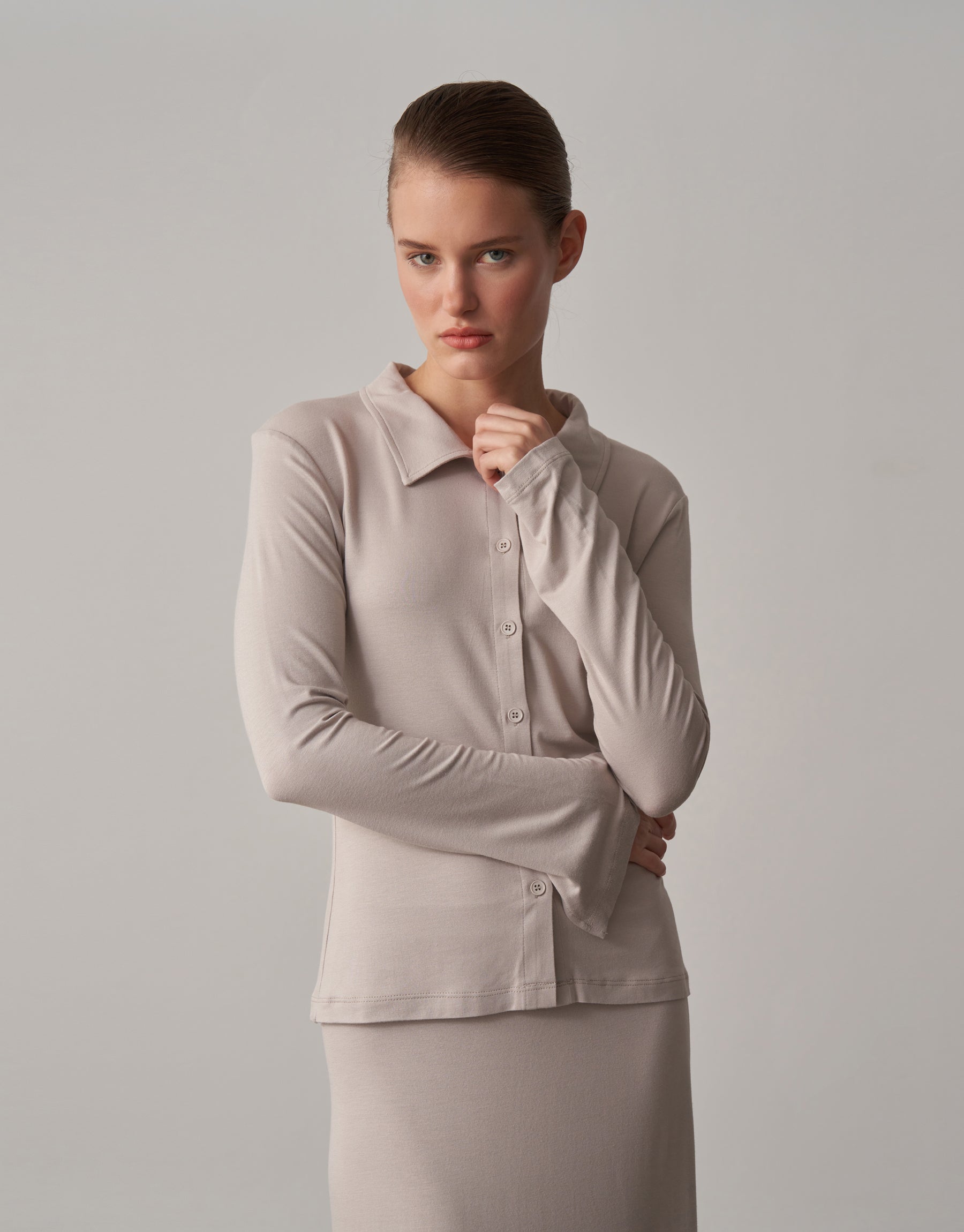 İkonik kol ucu detayı ile feminen bir duruşa sahip gündüz veya akşam kombinemeye uygun bluz.